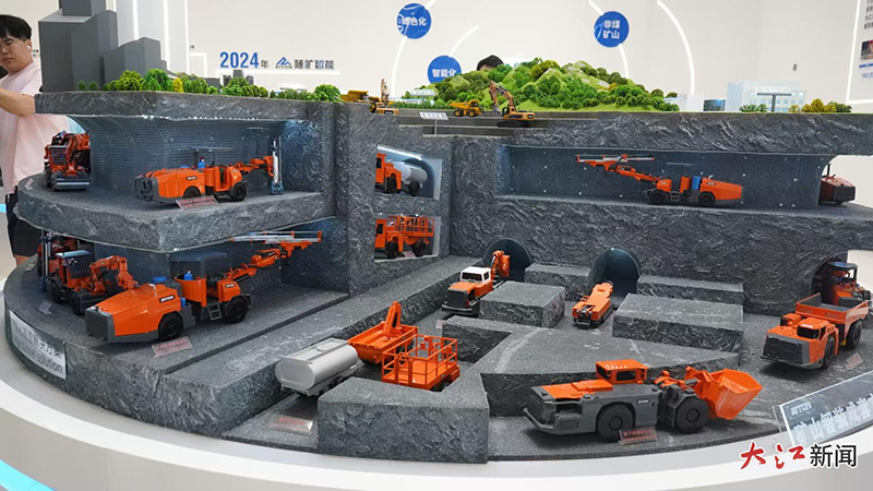展厅沙盘区,直观呈现该公司成套产品在地下隧道、地下矿山、地下煤矿场景下的应用。黄江萍说:“我们能为客户提供一站式解决方案,实现铲运机、运矿卡车等机械的自动化、纯电化和无人化应用。”