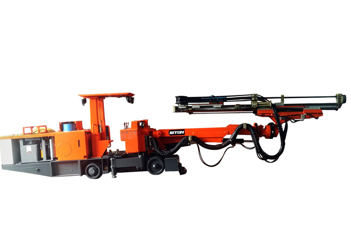 DR1-14轨轮式单臂液压掘进钻⻋:适应于煤矿、⾮煤矿、铁路隧道、引⽔⼯程、国防⼯程等岩巷有轨施⼯掘进中打炮眼作业,该机机⾝⼩,结构紧凑,适合在巷道断⾯5300×4070mm以下的岩⽯巷道中作业,钻孔直径φ38〜76mm。该机机动灵活,凿岩速度快,⼯作效率⾼可达0.8-2⽶/分;液压系统先进,维修⽅便;⼯作稳定,爬坡能⼒强,操作⽅便,安全可靠;设有专⽤⼤坡度28°应⽤⼯地机型。
