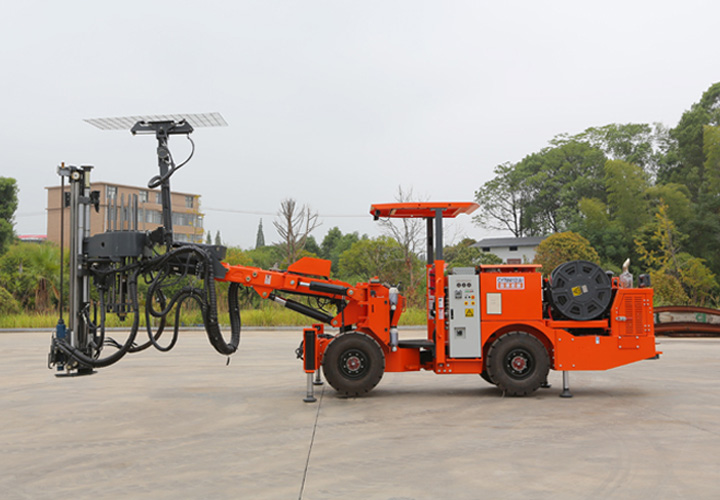 DS2矿安型号为CYTM41/2(E)是一款矿用液压锚杆钻车,全新紧凑型机型,采用窄型底盘专为三米多涵洞设计。长臂架设计满足作业范围广,适用于各种地下矿山、中小型地下工程锚杆作业,根据施工需求可选择树脂或管缝式锚杆机头或两用机头。采用两个液压凿岩机,一个用于钻孔一个用于塞锚杆。根据需求可选装锚杆杆库及网片抓取机械手,机器设有一套树脂输送系统,人机控制水平高,使得操作手将注意力集中在岩石锚杆支护上,锱杆机头采用模块化设计,机头结构简单、锚杆支护效率高,可匹配所有常用类型的错杆或组合锚杆,锚杆长度为1.5至2.5m等不同规格定制,轻松实现挂网、钻孔、送树脂(选配)、塞杆机械化作业。自动化安装锚杆,确保锚杆支护高效、质量稳定,经久耐用,提高矿山生产的安全性。柴油机动力供行走,电力供工作,配备电缆卷筒实现机械快速转场,可伸缩式的大臂最大覆盖范围满足5.6m高5.1m宽,爬坡能力14°(25%)。