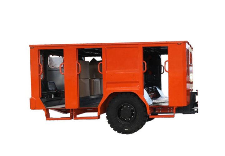 RU-23运人车,是我公司针对非煤矿山并巷工程施工的特殊作业环境,在融合国内外先进技术的基础上,专门研发设计的一款非煤矿山井巷专用人员运输车。RU-23采用125KW康明斯发动机提供强劲动力,采用铰接式底盘设计,车身小巧灵活,满足于不同矿山井下巷道转弯半径,爬坡度、并巷通行等工况条件的要求。全密封湿式桥(失压保护型)及匹配的美国MICO刹车系统,安全稳定可靠,处于领先地位。采用高强度的结构钢冲压工艺、应力时效工艺及气体保护焊技术,整车结构件经强度校核,能承受强力负载。前置驾驶室设计,为驾乘人员提供了宽阔的视里和舒适的驾驶环境;通过FOPS和ROPS标准检测认证的驾驶室,为驾乘人员提供了安全防护保障。驾驶与操控系统,采用了合理的人机工程布局设计,密封空调驾驶室、集中操控设计配置,操作方便,舒适轻松。整车涂装,经过严格的抛丸除锈,防锈底漆可达到航母等级的技术要求,使设备在各种工况条件下的防锈、防腐能力、使用寿命更强。