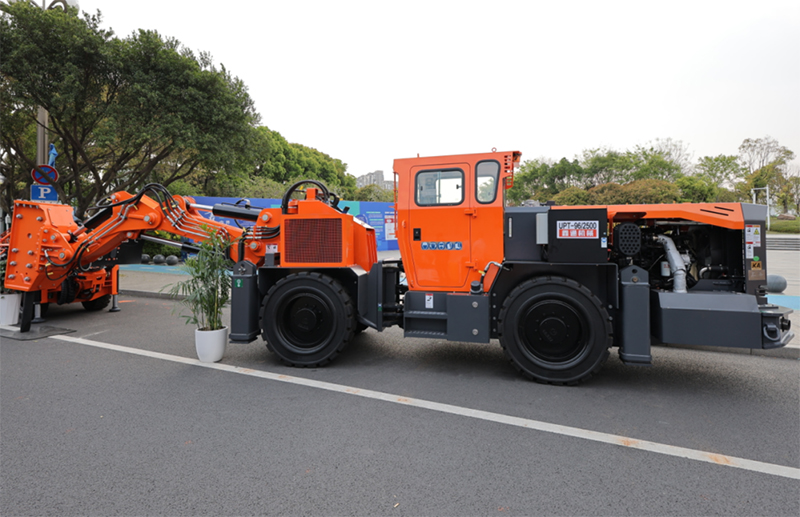鑫通展位上适应不同工况的高端装备,吸引了众多国内外客商的目光,纷纷驻足参观交流,特别是首次亮相的WJ-1/WJ-2/WJ-4系列地下内燃铲运机、HP7矿⽤混凝⼟喷射⻋、炸药装药台⻋及破碎台车,让鑫通展位人头攒动、人流如织。