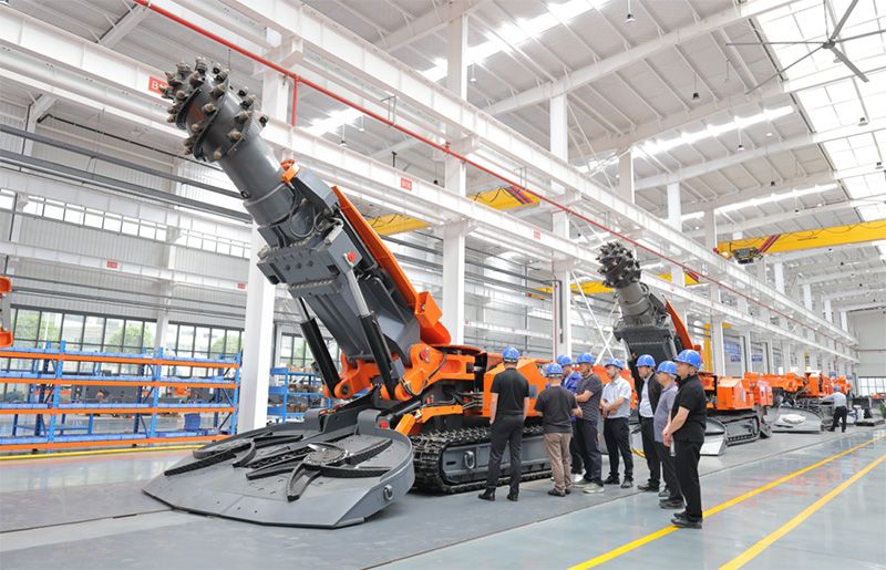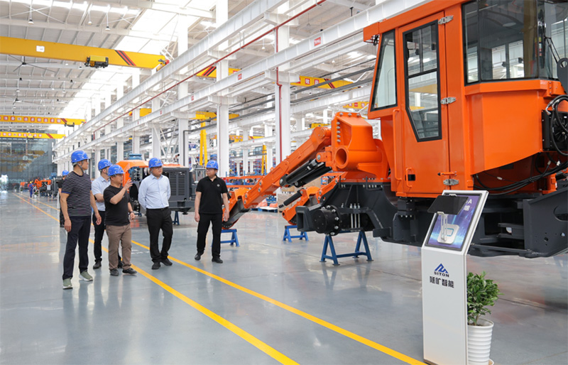 考察团先后参观了智慧工厂数字控制中心,以及煤矿、非煤矿山、地下工程三大板块设备装配线。考察团对江西鑫通产品成套化、智能化的研发生产策略给予了高度评价,并对掘进机、掘锚机、非煤矿山成套装备等主要产品进行了现场调研。总经理李鹏针对考察团的问询,逐一作出了详细解答及介绍。