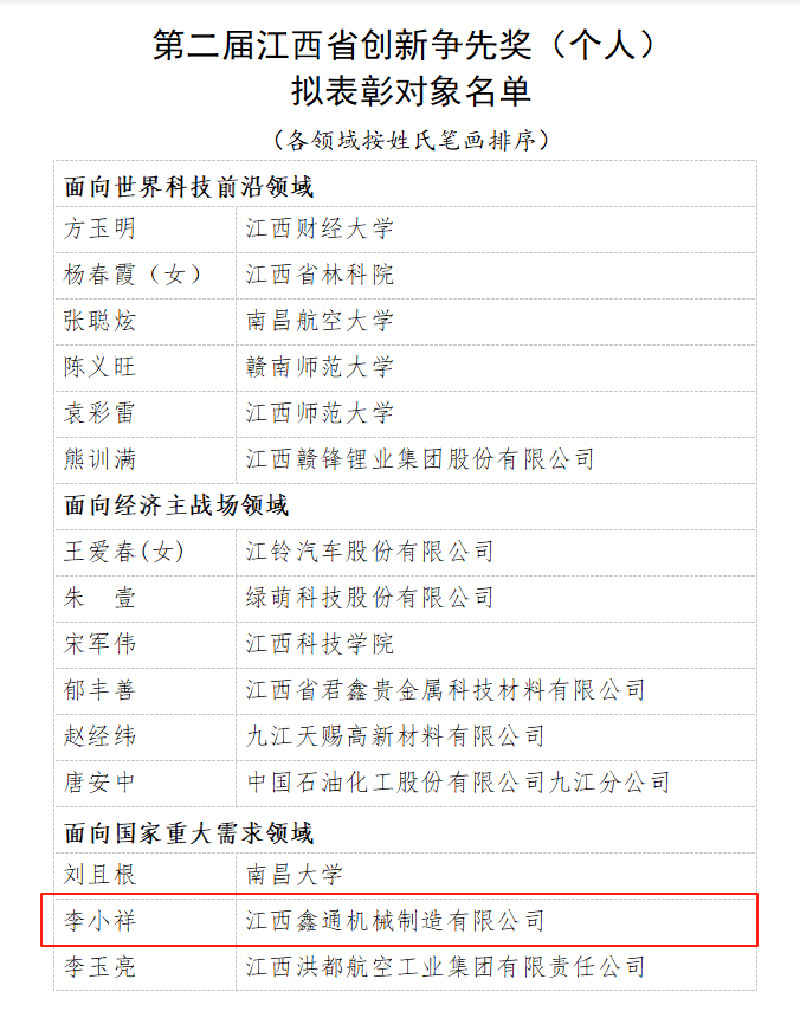 科技报国 | 热烈祝贺江西鑫通董事长李小祥荣获省创新争先奖