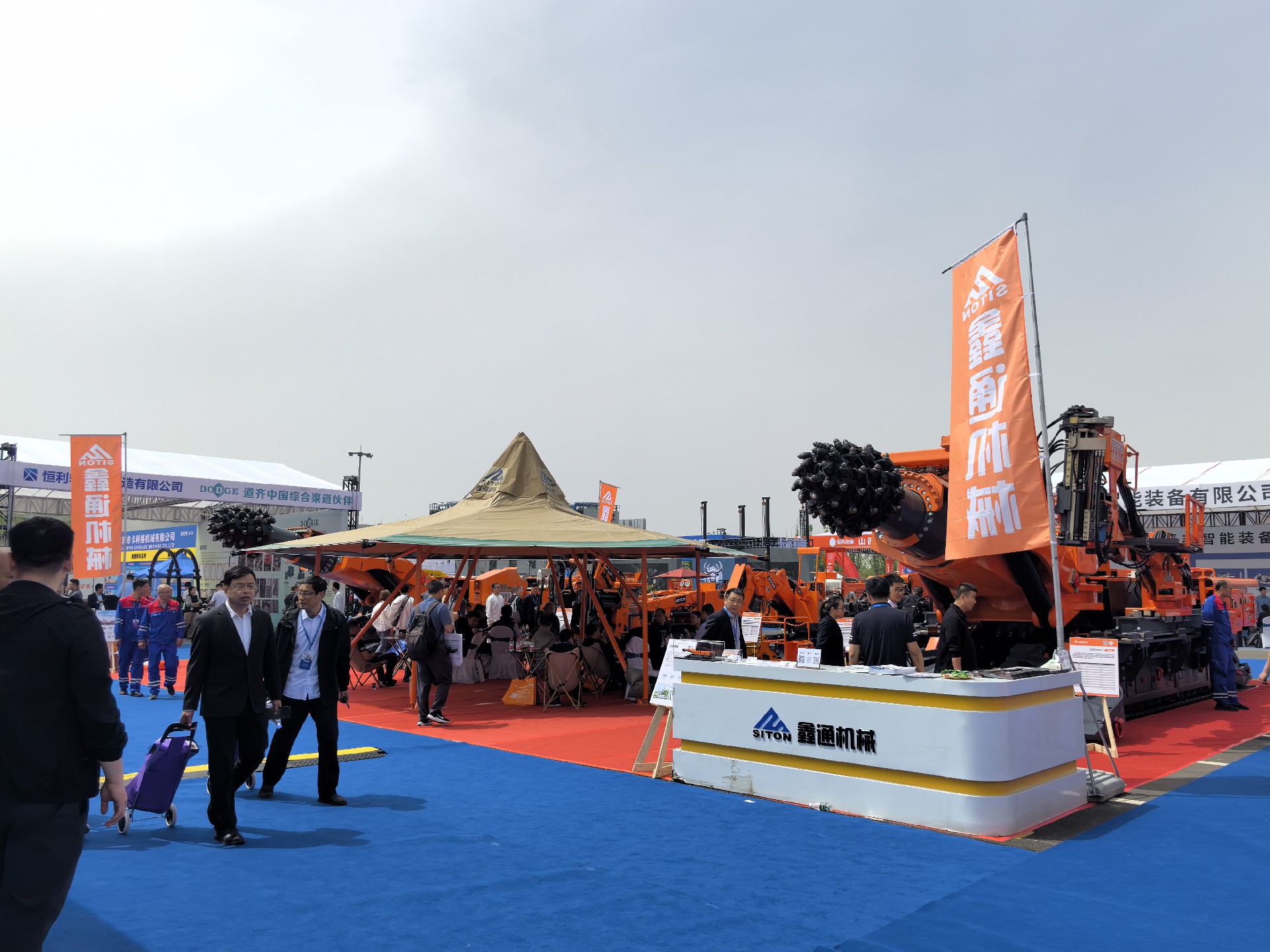 江西鑫通煤机系列新品在展会受到众多客户的关注,山西省工信厅副厅长张晓蕾等领导嘉宾莅临鑫通展位指导工作,了解江西鑫通机械产品特点及智能化发展现状,大力支持煤机智能引领、绿色发展。还有鑫通老朋友“太原市苍南商会”组团前来参观交流,众多观展嘉宾纷纷来到鑫通展位进行询问和了解。由于是室外展区,江西鑫通为来访贵宾搭建遮阳棚和置备休憩桌椅,尽可能给予客户舒适的参观环境,鑫通工作人员针对客户提出的各类问题,悉心地一一解答,无论是产品的定制化需求,还是针对各类工况的成套化解决方案,客户都能在鑫通展位得到令人满意的方案设计支持。鑫通展位,以好产品备受瞩目,因优服务人气爆棚。