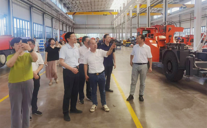 江西鑫通董事长李小祥向调研组一行汇报了江西鑫通在煤矿、非煤矿山、地下工程领域成套化装备的研发及生产概况,并就台车核心执行器的产销情况以及台车纯电绿色化、智能化的研发投产进度向调研组做了详细说明。