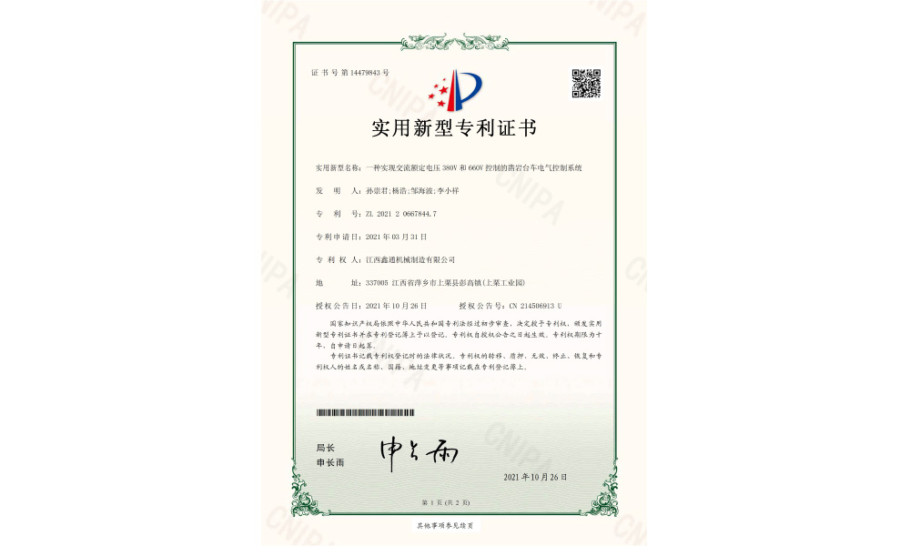 实用新型专利证书