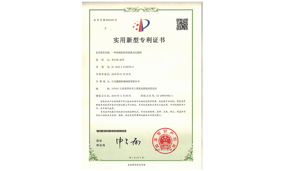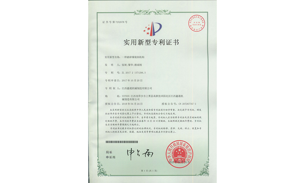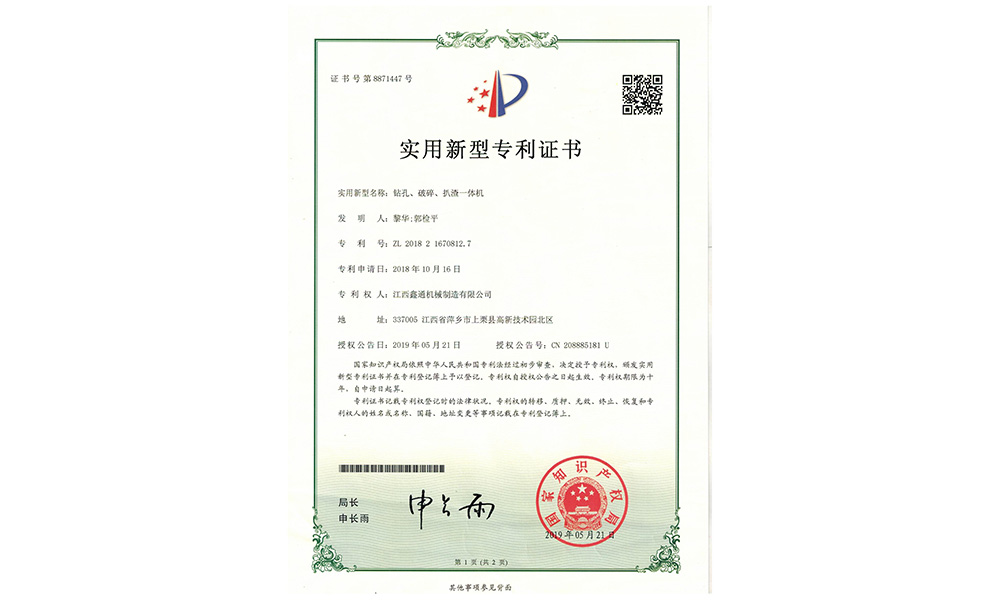 实用新型专利证书