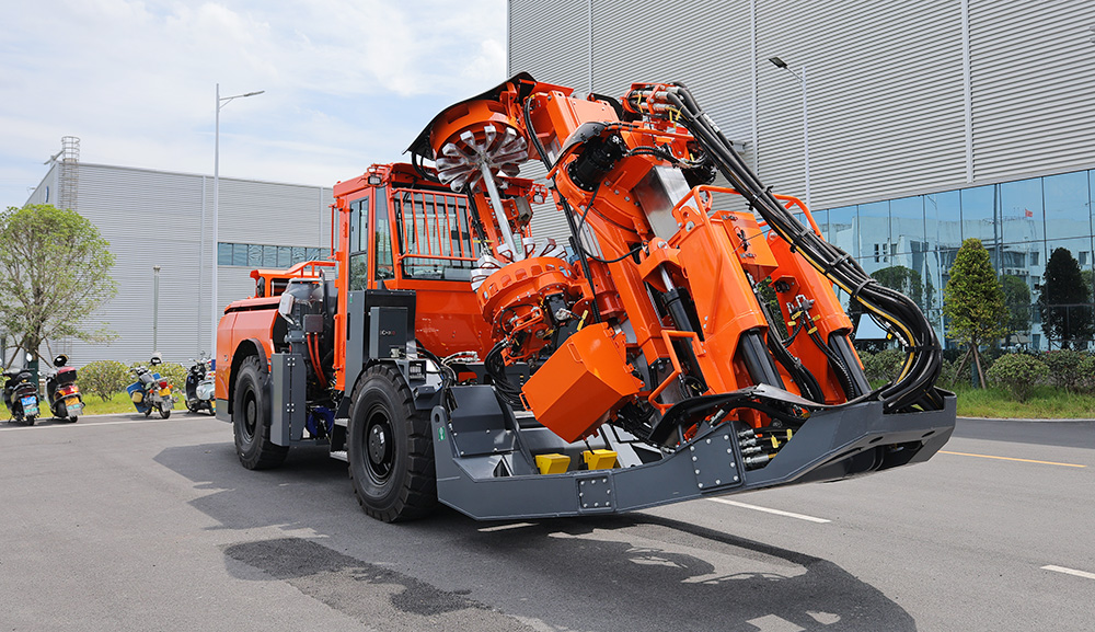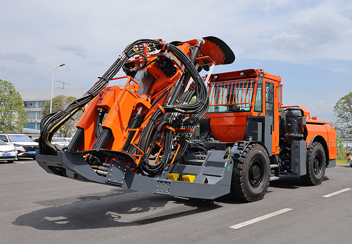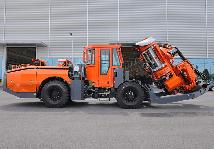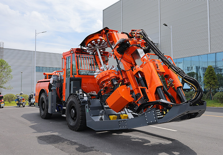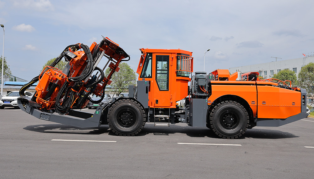 江西鑫通DL5-2是一款专为井下大规模崩落采矿设计的自动化深孔凿岩台车,以高效、智能和安全为核心优势。其最大钻孔深度超54米,孔径范围90-115毫米,配备大功率33KW凿岩机,可快速完成深孔钻探,适应自然崩落、分段崩落等采矿需求。DL5-2工作时:采用1套75+37KW电机泵组系统提供动力,通过液压柱塞泵多联式提供液压动力,液压系统控制阀组系统控制凿岩工作及其他动作,采用康明斯119KW柴油机提供动力,驱动液压泉由液压控制系统控制行车、驻车制动,四轮驱动行走、液压助力转向。DL5-2搭载自动换杆,减少人工操作风险,提升钻孔精度。结构上采用模块化设计,关键部件易于维护,降低停机时间;安全防护涵盖防滚架、紧急制动和自动灭火系统,严格遵循井下安全标准。适用于非煤矿山开采,显著提升爆破效果与资源回收率,是现代化矿山实现高效、低成本智能化作业的关键装备。