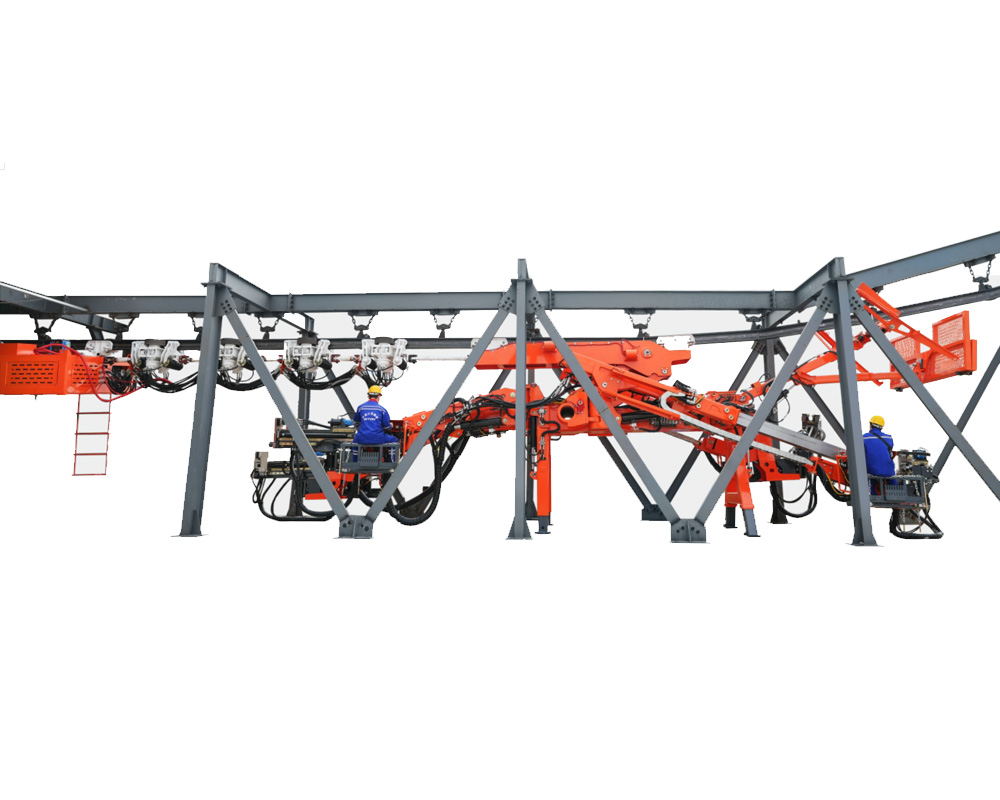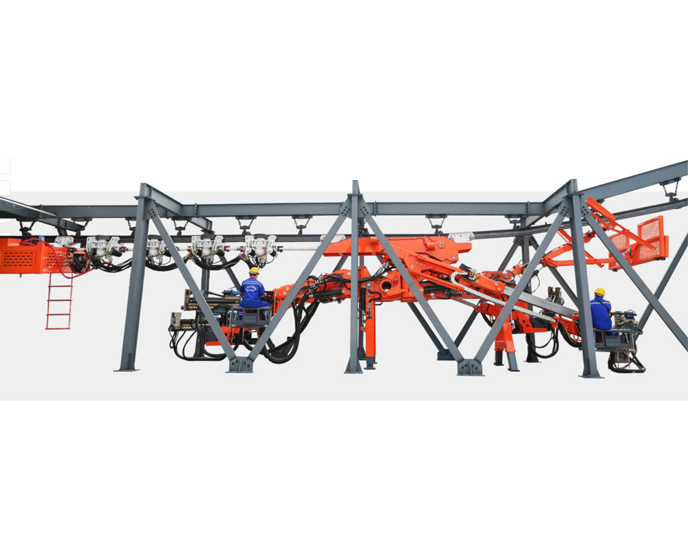 煤矿用单轨液压锚杆钻车在国内现有的各类锚杆支护机具的技术基础上,吸收借鉴国外产品的技术,结合我国煤炭掘进支护的现状及实际要求,研制出的一种具有知识产权的锚杆钻车。该设备设计合理、结构紧凑、自行灵活,可与掘进机、连采机、掘锚机等掘进设备进行交叉配套作业,目前巷道支护技术的代表设备。该机采用轨道梁行走,与掘进机、连采机、掘锚机等掘进设备搭配,更方便快捷,克服了现有锚杆台车与掘进设备错车不便的缺点。