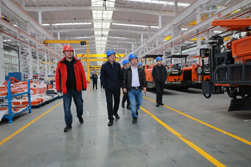 杨建枝一行在鑫通机械董事长李小祥陪同下,先后参观了沃思德凿岩机生产基地及鑫通智慧工厂,重点深入地下煤矿装备生产车间,实地了解煤机板块核心产品的生产情况与综合制造实力。